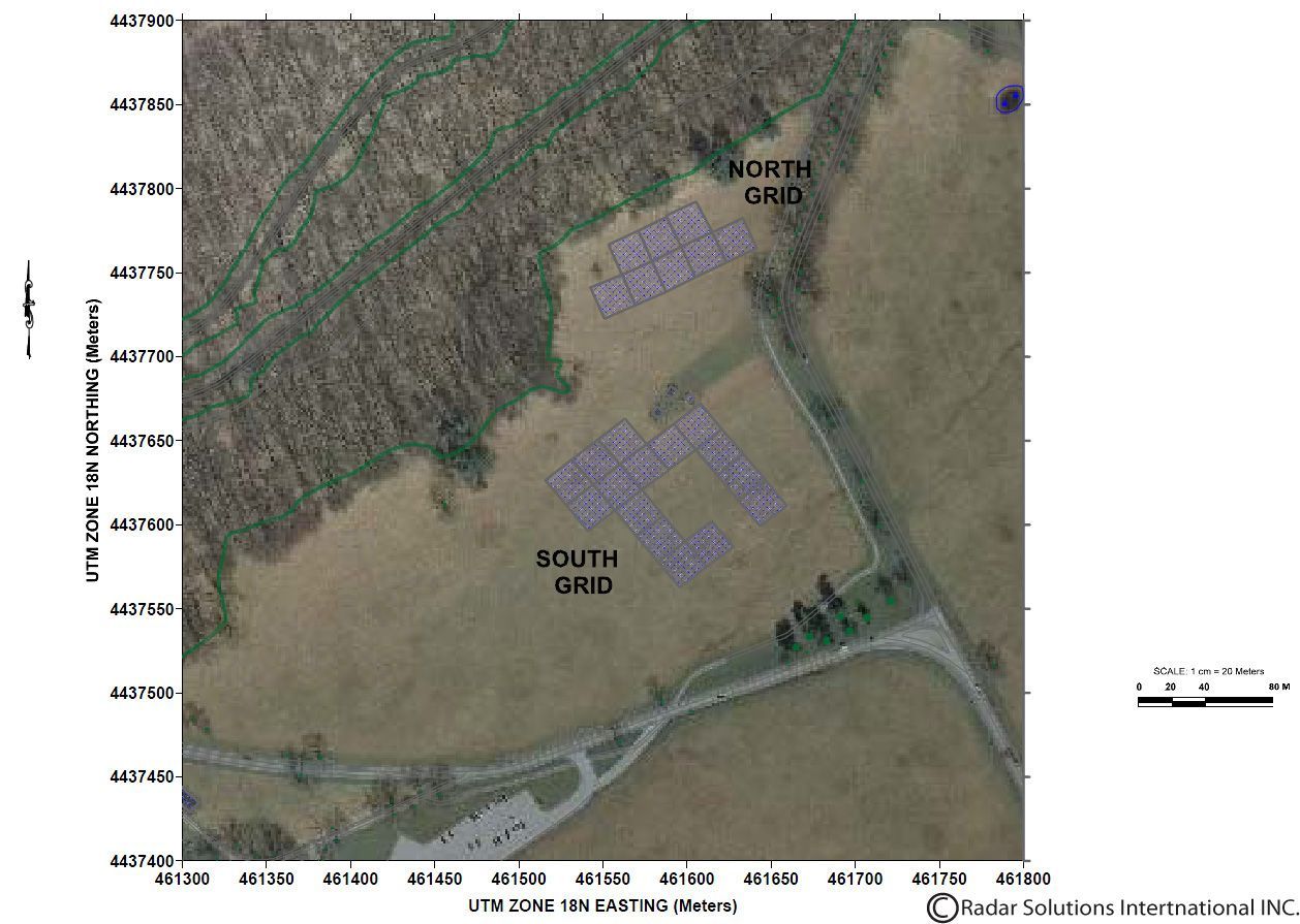 Hartgen Archaeological Associates, Inc. were asked to perform historical background research and a geophysical survey by the National Park Service of Valley Forge, and in August of 2013, Hartgen Archaeological Associates relied on Radar Solutions International, Inc. and our geophysical expertise to perform the survey. Hartgen and RSI teamed up to complete the geophysical survey of over 2.3 acres of land. The survey area was split into two separate areas; north of the tree line and south of the tree line. These two areas were chosen from pre-existing historical maps that showed human activity. To understand the full extent of the sub-surficial features within this area, RSI used a number of methods; ground penetrating radar (GPR), resistance meter, magnetometer, and electromagnetic conductivity.